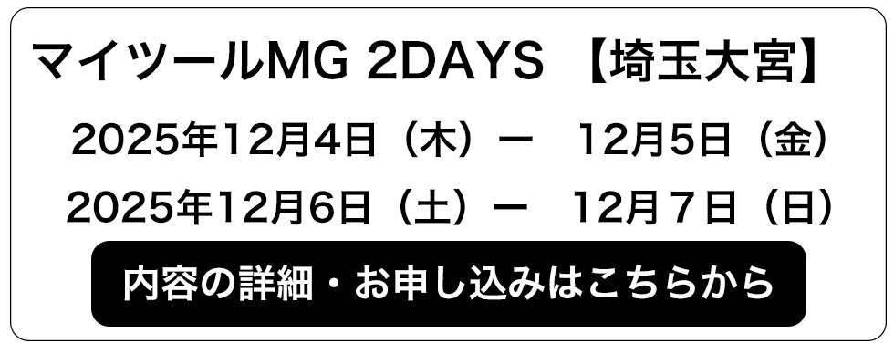 ※マイツールMGとマイツール教室、どちらを先に受けたらよいですか?とのご質問を頂きますが、どちらからでも大丈夫です。